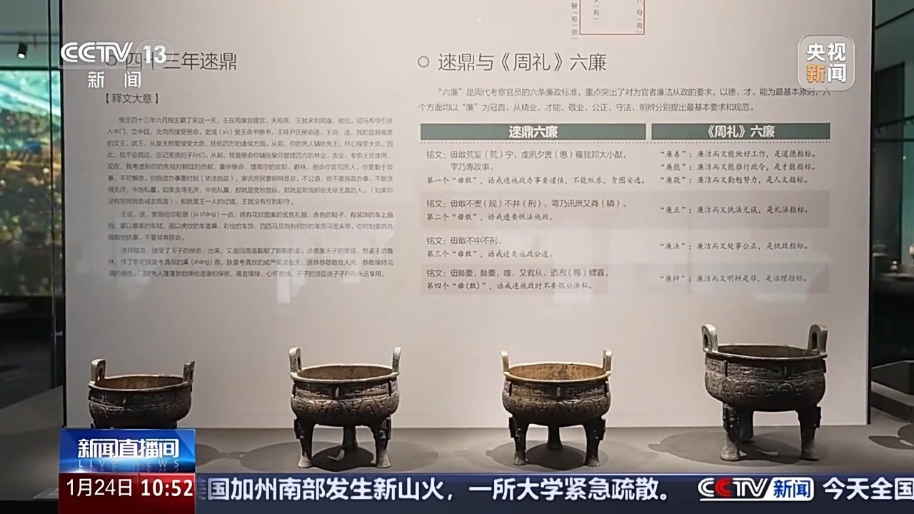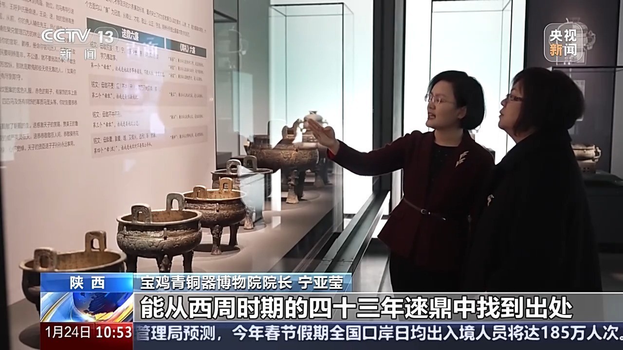 宝鸡青铜器博物院院长 宁亚莹:我们今天所倡导的社会主义核心价值观,其中敬业、公正、法治,能从西周的四十三年逨鼎中找到出处,我们的价值理念和文脉几千年来是一脉相承的。